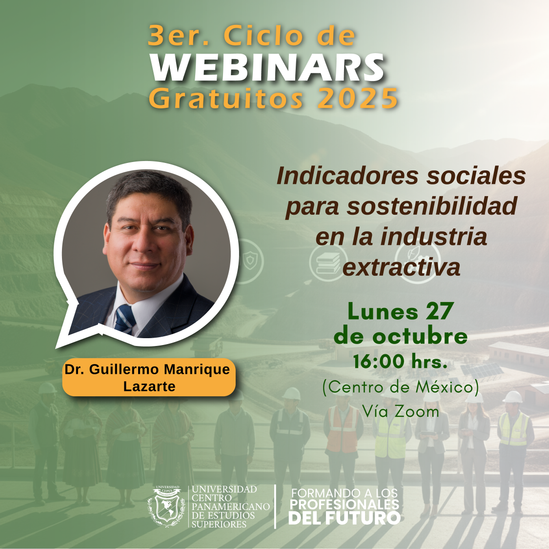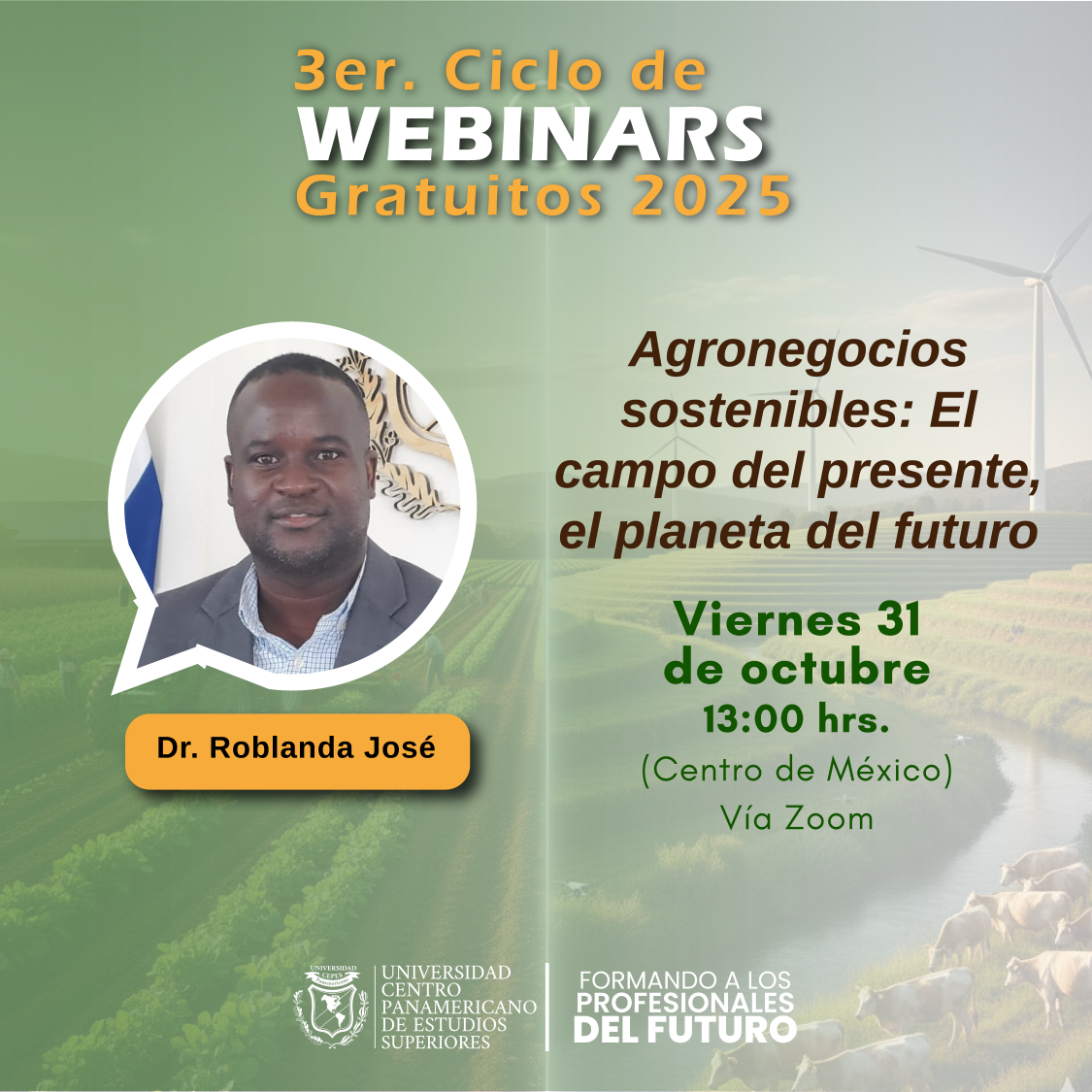 La Universidad Centro Panamericano de Estudios Superiores (UNICEPES) invita a todos los interesados en participar en el 2do Ciclo de Webinars Gratuitos 2025 del 24 al 31 de octubre, impartidas por ponentes internacionales en apoyo a la difusión del conocimiento.